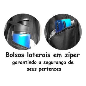Conta ainda com 3 compartimentos frontais com zíper para o armazenamento de objetos pessoais.
