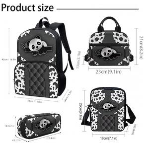Modelo: Conjunto mochila escolar 4 peças prata com estampa de pandas