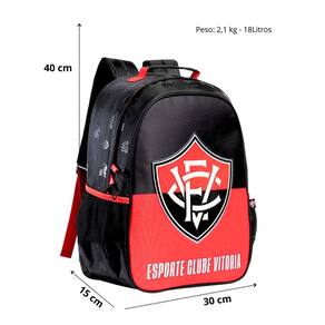 Para os pequenos apaixonados pelo futebol e pela torcida, essa mochila do vitória esporte clube é a combinação perfeita de estilo, conforto e praticidade para a rotina escolar. Principais características: - design esportivo com estampa exclusiva e logo em patch de pvc vincado que destaca toda a paixão pelo time. - alças acolchoadas e ajustáveis que garantem conforto e encaixe perfeito nas costas. - compartimento principal espaçoso, ideal para organizar livros e materiais escolares. - bolsos laterais em tela para garrafa, para manter a hidratação sempre à mão. - zíper de dentes resistentes com puxadores em corda que facilitam a abertura e o fechamento. - forro personalizado que reforça a exclusividade e o cuidado nos detalhes da linha barcelona xeryus. Essa mochila é a parceira ideal para acompanhar o ritmo da escola com muita energia, estilo e personalidade Dimensões: - largura: 30cm - altura: 40cm - comprimento: 15cm Peso: 400gr Cuidados: - guarde em um local seco e arejado evitando locais úmidos. - evite colocar excesso de peso no produto para não forçar os zíperes e costuras. - proteja os objetos cortantes e/ou pontiagudos evitando o contato direto com o produto. - evitar altas temperaturas. - cores claras poderão manchar quando em contato com outros objetos ou roupas de cores pigmentadas. Dicas de limpeza: - para a limpeza utilize apenas pano úmido com sabão neutro. - não deixar de molho e secar a sombra. Marca: Não Informado