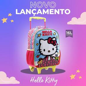 Mochila Escolar Hello Kitty Bolsa Feminina Mala Rodinhas 16L