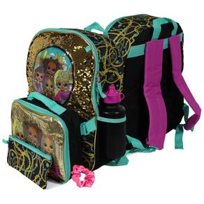 L.O.L. Surprise Set A marca numero 1 no mundo cria mais diversão com sua nova coleção de bonecas O.M.G. Material O Kit de mochila são feitos de poliéster 300D durável. Características A mochila possui um bolso com zíper de babados planos, 2 bolsos de malha lateral, alça superior do armário da web PP, encosto acolchoado e correias ajustáveis acolchoadas. O Kit de almoço é isolado com uma alça acolchoada. Classificação etária Não recomendado para crianças menores de 3 anos Marca: Não Informado
