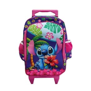 Mochila Escolar Infantil com Rodinhas Baby Stitch Flor - GV Bolsas