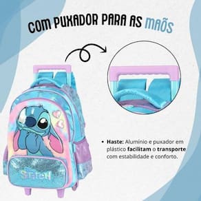 Se você procura uma mochila de rodinhas cheia de estilo, com brilho e o personagem mais fofo da Disney, a Mochila Stitch Azul é a escolha ideal para a volta às aulas! Com design vibrante, detalhes em brilhantes ela conquista pelo visual encantador e funcionalidade.