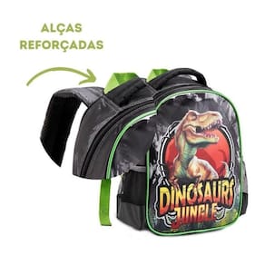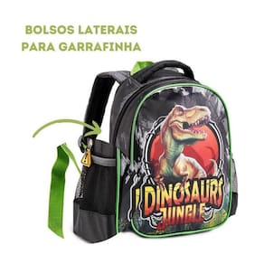 Mochila Escolar Infantil Dinossauro Mochila de Criança Mochila de Costa Cor: Verde Mochila Escolar Infantil - Mochila Dinosauro Ótimo espaço interno, mochila resistente para uso de dia dia Design moderno e autêntico Mochila infantil com 16 - Composição: 70% Poliéster 30% PVC - Conteúdo: Elástico para garrafa nas laterais, Puxador personalizado, Identificador no verso Alça de mão para auxiliar no transporte. Etiqueta para identificação na parte traseira Muito confortável e totalmente ajustável, adapta-se bem ao corpo