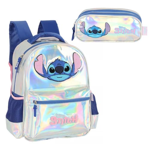 Mochila Escolar Infantil Feminina Costa Stitch Prata +Estojo
