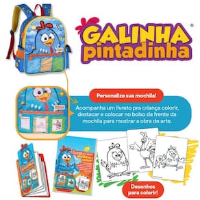 Mochila de Costas GP24626D: - Espaçoso compartimento principal: ideal para cadernos, livros e materiais escolares. - Bolso frontal com zíper: excelente para objetos de fácil acesso. - Bolsos laterais práticos: um bolso telado para garrafinhas e outro com tampa para itens adicionais. - Conforto no uso: alças de costas ajustáveis e acolchoadas, além de alça de mão superior. - Detalhes encantadores: confeccionada em cetim com patch de pelúcia e bordado da personagem. - Mochila personalizável: inclui um livreto para a criança colorir e personalizar, exibindo a obra no bolso frontal. Dimensões aproximadas: - Mochila de Costas: 33x27x12 cm