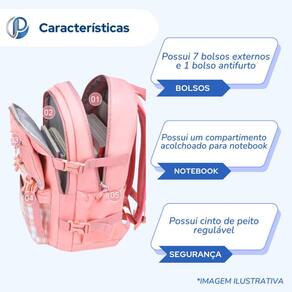 Principais Características: 7 bolsos externos 1 bolso antifurto 2 bolsos internos Compartimento acolchoado para notebook Cinto de peito ajustáve Capacidade: 23 litros