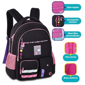 Cor: preto Tamanho: único Genero: unissex A mochila é confeccionada em poliéster com aplicação de patch que muda a estampa quando passa a mão. É uma coleção super descolada e alto astral da luluca. Possui compartimento para notebook e muitas estampas legais Características: Material: poliéster Alças acolchoadas reguláveis Puxadores personalizados Bolso frontal espaçoso 7 bolsos externos Bolsos laterais de telinha Compartimento interno para notebook