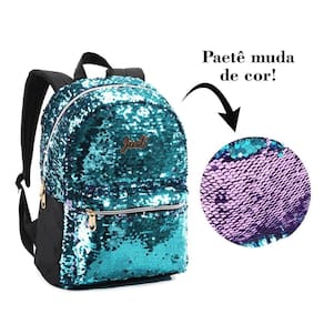 Mochila Escolar Juvenil Paetes Dupla Face Bolsa Feminina Muda De Cor Teen Denlex Cor: Azul/Lilás Mochila Escolar Juvenil Paetes Dupla Face Bolsa Feminina Muda De Cor Teen Denlex