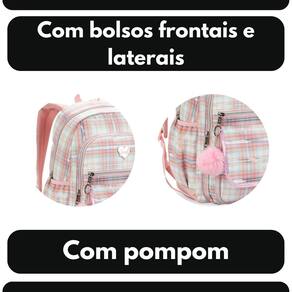 Mochila Escolar Juvenil Volta as Aulas Pompom Bolsos Kawaii Bolso Frontal Lateral Escolar Colorido - Cor: Rosa
