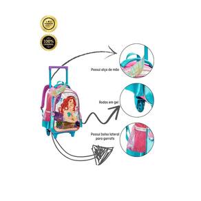 Mochila Escolar Luxo 2Em1 Costas E Rodas Sereia 3D