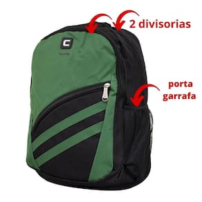 Confeccionada em poliéster, a mochila possui alça de mão e alças de costas acolchoadas com regulagem, lhe possibilitando mais conforto e comodidade no transporte.