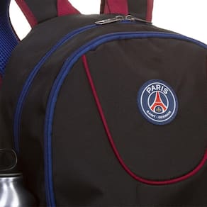 Opção mais discreta para os fãs do Paris Saint Germain, esta mochila grande é feita com tecido escuro, sem deixar de lado as cores que marcam o time francês. A bandeira está presente na costura do bolso lateral, assim como a aplicação frontal, puxador personalizado e o logo emborrachado. Possui 2 compartimentos e 24 litros de capacidade.