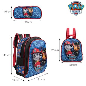 Kit Mochila Escolar Infantil Patrulha Canina De Costas, acompanha lancheira e estojo. Possui alça de mão reforçada. Agora você pode levar sua mochila no seu dia a dia ou acompanhar você na escola. Sua abertura maior se dá por zíper com puxador. Na parte de dentro possui amplo espaço para a guardar diversos materiais como cadernos, livros e estojos. Na parte da frente, possui bolso com zíper para a guardar pertences de menor tamanho e bolsos laterais.