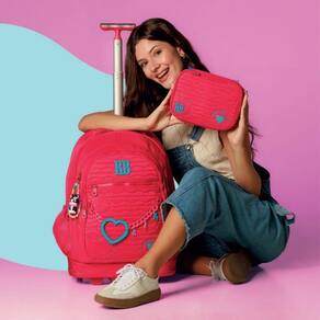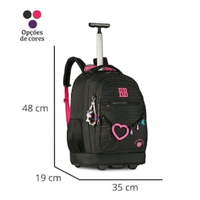 A mochila de carrinho Rebecca Bonbon RB27009 é puro charme e praticidade em um só produto Disponível em três cores incríveis - preto, rosa e lilás -, é confeccionada em material soft com matelassê de corações, plaquinha de metal e cadarço acetinado logado. O compartimento principal é superespaçoso, com divisórias acolchoadas para notebook e tablet, além de três compartimentos frontais, um deles com divisórias internas para manter tudo organizado. As laterais contam com bolsos telados duplos ideais para garrafinhas. Para completar, a mochila acompanha chaveiro de miçangas, mascote 3D, corrente com coração emborrachado e pingentes, além de uma cartela de adesivos exclusivos Rebecca Bonbon. O grande diferencial é sua versatilidade: pode ser Utilizado no carrinho, com rodinhas resistentes e puxador de metal com duas alturas e trava, ou nas costas, com alças acolchoadas guardadas em compartimento próprio, além de protetor para as rodinhas não sujarem a roupa. Conta também com alça de mão superior e puxadores de zíper personalizados. Dimensões aproximadas: 48x35x19cm. Marca: Não Informado
