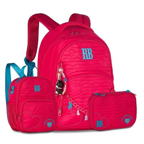Cheio de estilo e praticidade, esse kit traz a combinação perfeita para a vida escolar. A mochila RB27010 é espaçosa e versátil, confeccionada em material soft com matelassê de corações, divisória para notebook, dois bolsos frontais, bolsos laterais telados e bolso antifurto. Conta ainda com alças acolchoadas ajustáveis, alça de mão reforçada e alça carona para malas. Dimensões aproximadas da mochila: 44x33x14cm. A lancheira RB27011 é um modelo 2 em 1 superprático: pode ser Utilizado transversal ou como mochilinha de costas, com revestimento térmico no compartimento principal, bolso frontal adicional e bolsos telados laterais. Dimensões aproximadas: 27x20x12cm. Para completar, o estojo RB27013 traz organização total com 36 elásticos internos, estojo interno separado e capacidade para até 100 itens. Dimensões aproximadas: 22x16x6cm. Um kit completo e cheio de personalidade, ideal para quem ama o estilo Rebecca Bonbon. Marca: Não Informado Ean: 7795028708795