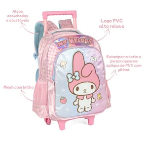 Mochila Escolar Rodas My Melody Hello Kitty Infantil Meninas - Luxcel