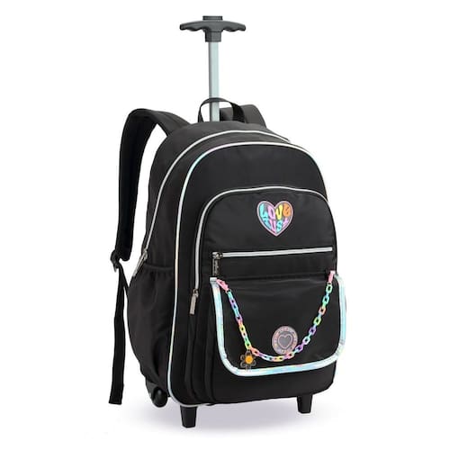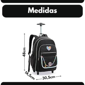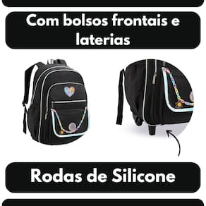 Com quatro divisórias espaçosas, oferece organização impecável para livros, cadernos, estojo e outros pertences, mantendo tudo no lugar e fácil de encontrar. Diga adeus ao peso nos ombros graças ao carrinho embutido e às rodas de silicone super resistentes e silenciosas, que proporcionam um deslize suave e confortável em qualquer superfície, seja no corredor da escola ou em passeios.