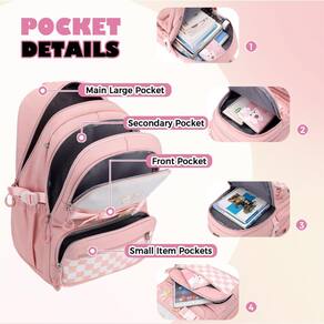 - Grande capacidade: esta linda mochila possui 1 bolso principal, 5 bolsos com zíper, 2 bolsos laterais e vários compartimentos internos. O compartimento principal acomoda facilmente pastas A4, livros didáticos e lancheiras. O bolso frontal secundário mantém os itens essenciais escolares, como cadernos e estojos de lápis, organizados, enquanto os bolsos laterais elásticos seguram com segurança garrafas de água e guarda-chuvas para facilitar o acesso