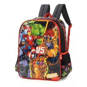 Mochila infantil escolar confeccionada em poliéster e pvc. Possui estampa dos vingadores, repartição única com fechamento por zíper, bolsos em tela nas laterais, alça de mão, alças ajustáveis nas costas, acabamento e costura no tom.