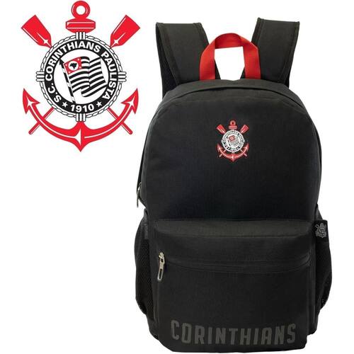 Características principais: - Estampa bordada com escudo do clube. - Inscrição “CORINTHIANS” em silk prateado. - Material resistente: Poliéster de alta qualidade. - Compartimento principal amplo com fechamento em zíper. - Bolso frontal com zíper para itens menores. - Bolsos laterais em tela para garrafa ou acessórios. - Alças acolchoadas e reguláveis para conforto prolongado. - Alça de mão superior reforçada. - Medidas aproximadas: 44 cm (A) × 31 cm (L) × 15 cm (P). - Cor predominante: Preto com detalhes em vermelho e cinza. - Quantidade: 1 unidade.