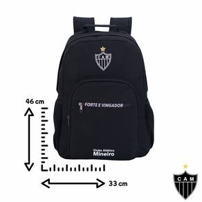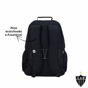 Características: - Confeccionada em Poliéster - Dois bolsos laterais em mesh - Puxadores de zíper personalizados - Escudo oficial do Atlético Mineiro estampado bordado - Compartimento principal espaçoso + bolso frontal - Alças acolchoadas e ajustáveis