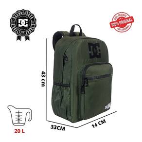 Design moderno e esportivo com a assinatura DC Shoes Bolsos organizadores para itens pessoais, canetas e acessórios Alças ajustáveis e acolchoadas para maior conforto Painel traseiro ventilado para conforto durante o uso prolongado Material resistente e impermeável, ideal para diferentes condições climáticas Perfeita para uso escolar, esportes e aventuras no dia a dia Medidas da mochila Altura 43 cm Largura 33 cm Profundidade 14 cm 20 litros Material poliester 900D