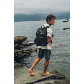 Cor: Pretop Tamanho: nico Genero: Unissex Coleção confeccionada em poliéster com impressão a óleo no painel frontal. Etiquetas emborrachadas costuradas no painel frontal, Bolso frontal e alça. Puxadores de zíper em corda com ponteira metálica e logo gravado. Tela com espuma e bordado personalizado no painel traseiro