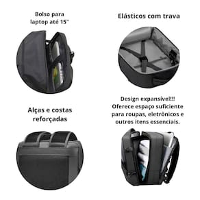Organização eficiente: Vários compartimentos e bolsos para separar itens pessoais, eletrônicos e acessórios.