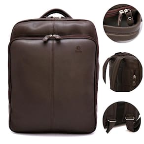Ficha técnica - Gênero: Masculino - Material: Couro - Capacidade: 30L - Profundidade: 16cm - Quantidade de bolsas: 1 - Com compartimento para notebook: Sim - Desenho do tecido: Flother - Com saída para fone de ouvido: Não - Tipo de mochila: Urbano - Com bolso para garrafa: Não - Temporada de lançamento: Outono-inverno - É reforçada: Sim - Cor principal: Marrom-escuro - Com cinto de peito: Sim - Com cinto abdominal: Não - É à prova d'água: Não - Largura: 31cm - Ano de lançamento: 2021 - cor: marrom escuro - Com rodas: Não