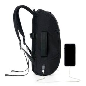 Saída USB externa permite recarregar dispositivos em movimento com powerbank interno.