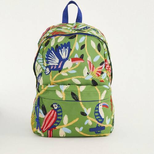 Estilo, cor e praticidade reunidos em uma peça exclusiva da FARM. A Mochila Farm Xodó Bosque dos Pássaros Verde traz estampa vibrante com fundo escuro, que valoriza as cores tropicais e dá um toque moderno e autêntico ao seu visual.