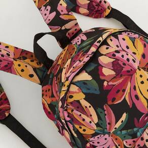 Estampa floral tropical exclusiva FARM Modelo espaçoso e funcional Bolso frontal para praticidade no dia a dia Alças ajustáveis para maior conforto Ideal para passeios, viagens ou uso diário