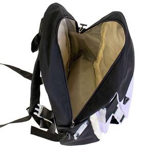 A Mochila Feminina Arara Dourada é confeccionada em PU com acabamento em costura, forro interno em poliéster e contém bolso principal com fechamento em zíper, bolso Interno para Notebook, bolso frontal inferior com fechamento em zíper, bolso frontal superior com fechamento em zíper e bolso com fecho de engate e bolsos laterais com elástico.