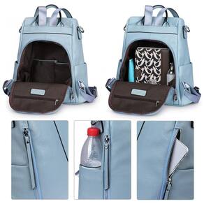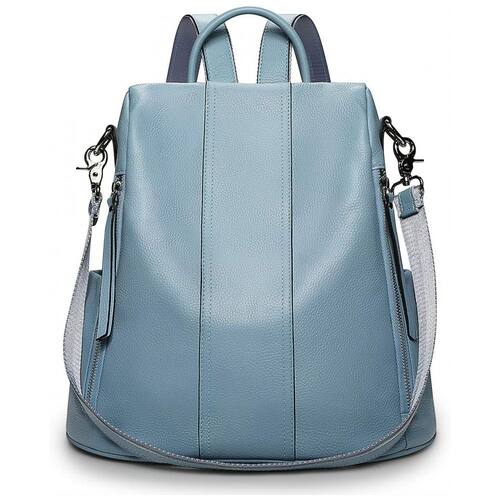Mochila Feminina de Couro Conversível para Bolsa de Ombro, S ZONE, Azul Claro - Branco - Regulável