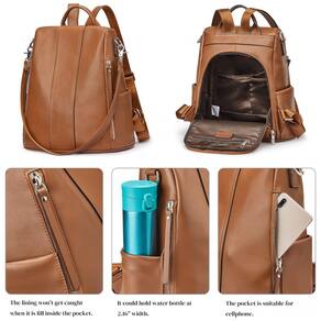 Espaçosa o suficiente para uso diário A bolsa mochila para mulheres possui 1 compartimento principal com bolso interno, 2 bolsos internos com fenda, 2 bolsos laterais e 2 bolsos frontais com zíperes lisos. Seu tamanho de 33,53 centímetros x 16 centímetros x 32,51 centímetros CLA é adequado para viagens, escritório, trabalho, negócios e viagens rodoviárias, faculdade e qualquer outra ocasião.