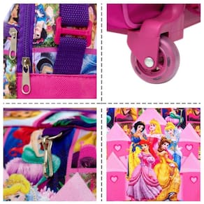 Kit Mochila Escolar Infantil Princesas Rodinhas, acompanha lancheira e estojo. Possui alça de mão reforçada. Agora você pode levar sua mochila no seu dia a dia ou acompanhar você na escola. Sua abertura maior se dá por zíper com puxador. Na parte de dentro possui amplo espaço para a guardar diversos materiais como cadernos, livros e estojos. Na parte da frente, possui bolso com zíper para a guardar pertences de menor tamanho e bolsos laterais.
