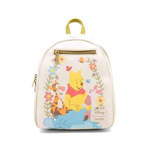 Mantenha seu néctar das flores seguro enquanto você pula pela madeira dos cem acres com o tigre e sua turma! Esta mini mochila creme Ursinho Pooh apresenta uma estampa de Pooh, Leitão, Tigre e Eeyore desfrutando da companhia um do outro, cercada por flores e borboletas. Vem com alças ajustáveis, bolso frontal com zíper, alça de transporte superior e fecho de zíper superior. - Hot Topic Exclusiva - Bolsa fashion feminina - Capa de couro sintético, com forro interno de tecido listrado. - Bolso frontal com zíper. Alças de ombro ajustáveis. Alça de transporte superior. - Mede 22 x 26 x 11 cm