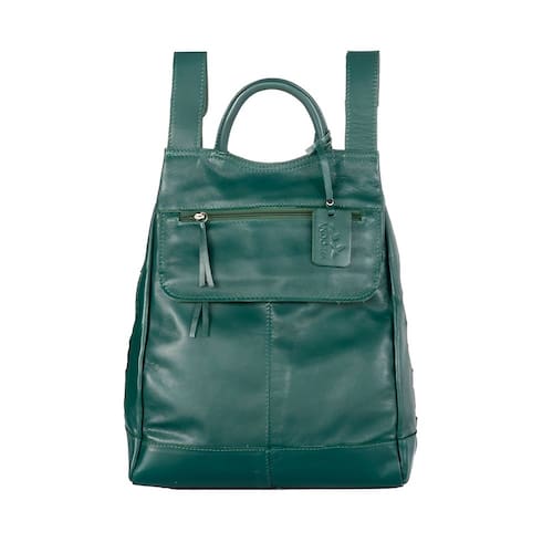 Mochila Feminina Malu em Couro autêntico Verde Musgo 6 Bolso - Verde Musgo - P + P