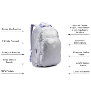 Mochila de Nylon Básica com Brilho Juvenil muito leve para Escola, Trabalho, Viagem, Praia, Lazer e Academia.Mochila casual, com visual moderno e descolada para uso no dia a dia. Excelente para carregar seus objetos pessoais, levar em um passeio, na escola, na praia ou trabalho. Possui 1 compartimento principal bem amplo, com espaço para Notebook, e 1 bolso externo grande. No compartimento principal possui um bom espaço para acomodar seus objetos, na parte frontal possui um bolso externo grande fechado com zíper para carregar celular, tablets, chaves e pequenos objetos. BENEFÍCIOS1. Atendimento pós venda para suprir todas as suas necessidades desde o momento da compra até a entrega do produto.2. Produto em Nylon Poliestere, com ótimo custo x benefício.3. Produto com design moderno e atual.4. Garantia de Fábrica contra defeitos de fabricação.CARACTERÍSTICASConfeccionada em Nylon Poliester brilho1 compartimento principal fechado com zíper bidirecional1 espaço para Notebook1 bolso externo frontal grande fechado com zíper de acesso rápidoAlças de ombro anatômicas com ajuste / regulagem de tamanhoAlça de Mão em fita de nylonAlças de ombro espumadas para maior conforto ao carregar pesoMochila muito leveMEDIDAS EXTERNAS Altura : 45 cmLargura: 31 cmProfundidade : 14 cmGARANTIA E QUALIDADEGarantia - 30 dias para defeitos de fabricaçãoQualidade - Nossos produtos são comercializados em parceria com grandes fábricas de bolsas e mochilas, que garante nossa qualidade dos produtos.