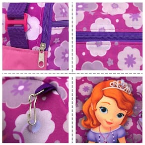 Kit Mochila Escolar Infantil Princesa Sofia Roxa, acompanha lancheira e estojo. Possui alça de mão reforçada. Agora você pode levar sua mochila no seu dia a dia ou acompanhar você na escola. Sua abertura maior se dá por zíper com puxador. Na parte de dentro possui amplo espaço para a guardar diversos materiais como cadernos, livros e estojos. Na parte da frente, possui bolso com zíper para a guardar pertences de menor tamanho e bolsos laterais.
