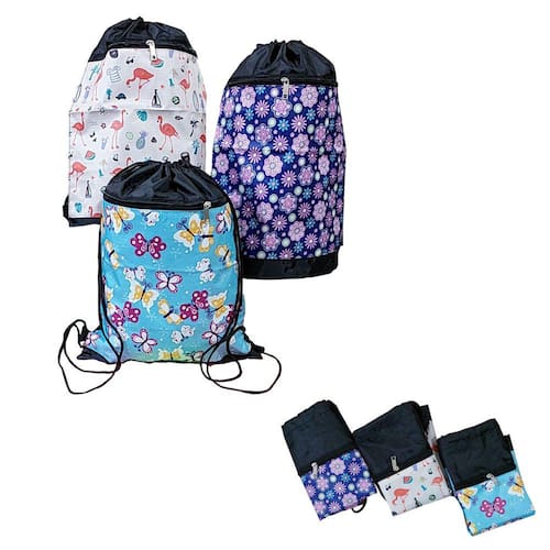 Mochila Feminina Saco Sacola Impermeável com Bolso Frontal - Estampada A Mochila Saco Sacola é Impermeável. Na cor preta com estampa aplicada no bolso frontal. Fechamento do bolso a zíper. Material leve, resistente e impermeável. É dobrável, cabendo facilmente dentro da bolsa ou mala de viagem, ideal para atividade esportiva e caminhada, acomodando seus pertences de forma prática e segura.Medidas da mochila aberta: 46 cm altura x 24 cm largura x 8 cm profundidade.Bolso externo: 30 cm altura x 24 cm largura.A mochila dobrada fica com aproximadamente 10 x 12 cm.Capacidade aproximada de 10 litros.Material: Poliéster.Não é possível a escolha de cores e modelos das estampas, pois elas variam a cada lote recebido.Atenção: Produto de alta rotatividade. Recebemos novas remessas semanalmente e algum detalhe pode não ser como os da foto porém o produto é o mesmo e mantém as mesmas características e qualidade. Enviaremos cores e modelos conforme nossa disponibilidade de estoque.Contém: 1 mochila.