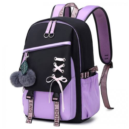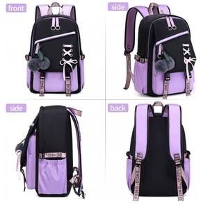 O design ergonômico conta com alças ajustáveis acolchoadas que ajudam a aliviar a pressão nos ombros e costas, além de painel traseiro com material respirável para maior conforto em uso prolongado. O tecido é resistente à água e ao desgaste, adequado ao uso frequente, com visual em estilo anime/kawaii, laços decorativos e pompom de pelúcia que deixam a mochila mais divertida para uso escolar e urbano.