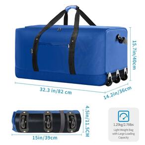 Mochila dobrável Finnhomy 120L com 3 rodas, mochila leve de viagem com grande capacidade de carga, mochila rolante de 32 polegadas com alça de ombro para viagens, acampamento e esportes, azul marinho