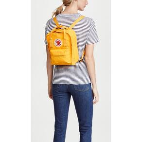 Mini mochila feminina Fjallraven Kanken, amarelo quente, tamanho único - Tecido: trama de nylon - Comprimento: 20,5 cm, Altura: 28 cm, Profundidade: 7,5 cm - Bolsos laterais e bolso frontal com zíper - Alças ajustáveis - Peso: 0,23 kg
