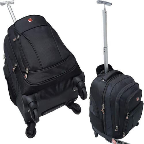 - compartimento principal grande com compartimento para notebook acolchoado - otimo para separar livros escolares, fechamento em ziper duplo - compartimento frontal espaçoso com ziper - bolsos frontais com ziper - bolsos laterais para garrafinhas - puxador com niveis de altura - 4 rodas giratorias 360 graus - giro completo - super resistente e reforçada - alça de costas acolchoadas e ajustaveis - compartimento com ziper para guardar as alças