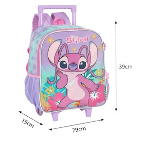 Mochila de Rodinha Luxcel Stitch Roxo   Desperte seu espírito aventureiro com a Mochila Escolar de Rodinha Stitch Disney – Lançamento Exclusivo!   Perfeita para os fãs do adorável alienígena Stitch, esta mochila combina estilo e funcionalidade com um toque divertido e moderno.    Fabricada em material resistente, garante durabilidade para acompanhar a rotina intensa dos estudantes. Seu compartimento principal espaçoso permite guardar livros, cadernos, estojos e outros materiais escolares com organização e segurança. Além disso, conta com bolsos laterais ideais para garrafinhas.   As alças acolchoadas e ajustáveis proporcionam mais conforto no transporte, enquanto o formato ergonômico distribui melhor o peso nas costas. É ideal para escola, passeios e outras atividades do dia a dia.   Características da Mochila Escolar: - 1 Bolso Principal com bastante espaço - 2 Bolsos laterais para squeeze - Alças de costas acolchoadas e ajustáveis - Alça de mão reforçada na parte superior - Tagg de identificação - Puxadores personalizados - Material: 70% Poliéster 30% pvc - Forro: 100% Poliéster   Dimensões da Mochila Escolar: Altura: 39 cm Largura: 29 cm Profundidade: 15 cm   Conteúdo: - 1 Mochila