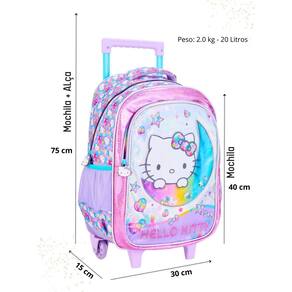 Prepare-se para decolar em aventuras incríveis com a hello kitty s essa mochila com rodinhas é um verdadeiro espetáculo cósmico, perfeita para brilhar nos corredores da escola, nas viagens em família ou em qualquer passeio cheio de fantasia. Com cores encantadoras, brilho galáctico e muito charme, ela é o acessório ideal para quem ama o universo mágico da hello kitty painel frontal com aplicação holográfica, trazendo a hello kitty aconchegada em uma lua colorida, com pvc em patch com muitas estrelinhas soltas, corações e brilhos que mudam de cor estampados - como um pedacinho do céu noturno nas mãos das pequenas compartimento em pvc com gliter rosa. Mala em poliéster, com alças acolchoadas estampadas com silk. Alça retrátil com acabamento lilás e haste metálica azul, fácil de manusear e perfeita para acompanhar o crescimento das pequenas exploradoras do universo. Interior espaçoso e funcional, pronto para guardar livros, roupas, brinquedos ou qualquer item importante para uma jornada cheia de imaginação. Puxadores personalizados com a carinha da hello kitty, trazendo delicadeza até nos mínimos detalhes. Laterais com bolsos em mesh lilás, ideais para garrafinhas, acessórios ou itens secretos de missão - puxadores emborrachados - frente em pvc holografico - zíper multi colorido Cuidados: - guarde em um local seco e arejado evitando locais úmidos. - evite colocar excesso de peso no produto para não forçar os zíperes e costuras. - proteja os objetos cortantes e/ou pontiagudos evitando o contato direto com o produto. - evitar altas temperaturas. - cores claras poderão manchar quando em contato com outros objetos ou roupas de cores pigmentadas. Dicas de limpeza: - para a limpeza utilize apenas pano úmido com sabão neutro. - não mergulhar na água e não utilizar componentes químicos, solventes ou alvejantes. - não deixar de molho e secar a sombra. Marca: Não Informado Ean: 7899768868662