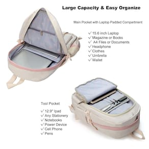Esta mochila é feita de resistência à água de alta qualidade. Idade recomendada: 3 a 14 anos - ?Tamanho grande e presente?: o tamanho da mochila é de 35 x 19 x 45 cm (C x L x A), peso: 700 g. A bolsa para laptop com compartimento acolchoado serve para tablets de 13,3,15,6 e 16 polegadas. Esta bolsa feminina para livros também com pingente de chave de bola fofa e distintivo de personalidade como presente torna as bolsas mais elegantes e exclusivas - ?Material impermeável e zíper suave?: a mochila campus é feita de tecido de nylon à prova d'água, ultraleve de alta densidade e forro de poliéster com estampa fofa. O fecho de zíper de metal é utilizado pelos zíperes de qualidade premium para garantir o uso duradouro - ?Segurança e confortável?: o cinto atencioso em ambos os lados pode criar uma base sólida de suporte se você estiver embalando muitas coisas nas mochilas. As alças largas e espessas em forma de S são bem acolchoadas, ajustáveis e confortáveis de carregar. O cinto de bagagem na parte de trás pode ser colocado na bagagem/mala para tornar sua viagem mais conveniente - ?Vários compartimentos e grande capacidade?: a mochila de viagem feminina tem 5 bolsos separados de tamanhos diferentes e dois bolsos laterais que atendem ao seu armazenamento diário. Os três bolsos frontais podem guardar dispositivos de carregamento e outros itens pequenos, convenientes para sua organização diária. O bolso principal inclui capa acolchoada para laptop com cinto elástico e bolsos internos ocultos com zíper. Os bolsos frontais para ferramentas também vêm com vários compartimentos para fornecer espaço espaçoso para as necessidades - ?Para qualquer idade e ocasião?A mochila à prova d'água é elegante o suficiente para uso casual e feminino, enquanto o design oferece multifuncionalidade. Mochila perfeita para jovens adolescentes, senhoras. A mochila básica multiuso para a maioria das suas necessidades, fácil de combinar com suas roupas, adequada para viagens curtas, trabalho, compras, universidade, escola, etc.