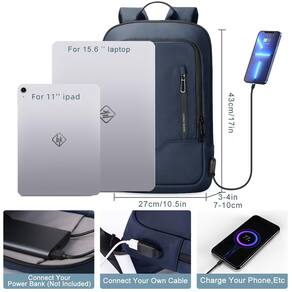 mochila para laptop - ?Fácil de organizar?Esta mochila para laptop masculina tem vários compartimentos e bolsos práticos: 1 bolso principal, 1 bolso frontal, 2 bolsos acolchoados para laptop, 4 bolsos de malha, 3 bolsos normais, 3 bolsos com zíper, 3 bolsos para caneta, 3 bolsos para cartões, 1. Pode fornecer espaço espaçoso para o seu laptop (cabe até 15,6 polegadas), iPad, pasta, canetas, livros, bolsa, tablet, carregador portátil, etc. Mantém seus itens organizados e fáceis de encontrar. - ?Design de porta USB?Com porta de carregamento USB externa e cabo de carregamento interno, esta bolsa para laptop com porta USB oferece um acesso fácil para carregar seu telefone quando você estiver carregando uma mochila de computador na estrada. (Power Bank não está incluído) - ?Confortável e durável?Esta mochila azul para laptop masculina é feita de tecido Oxford resistente à prova d'água com zíperes de metal duráveis. A parte traseira é feita com material EVA de alta qualidade, que é confortável e macio, oferece o máximo suporte para as costas. Alças de ombro respiráveis e ajustáveis com almofada de espuma ajudam a aliviar o desconforto do ombro. - ?Leve e conveniente?O peso desta mochila azul escuro é de 650 g, que é leve e fina, o que a torna muito adequada para carregar por muito tempo. E o design de boca aberta ajuda você a carregar facilmente e manter o rastreamento de cada item, tornando-o muito conveniente de usar. - ?Ótima mochila de trabalho para homens e tamanho perfeito?O tamanho das mochilas casuais é de 43 x 28 x 7 cm. Perfeita para atividades internas/externas. Uma alça de bagagem na parte de trás da mochila ajuda a liberar sua mão, tornando sua viagem e viagem mais convenientes onde quer que você vá. Escolha perfeita como mochila universitária, mochilas universitárias para homens e mulheres. - ?100% super serviço sem se preocupar?Nossas mochilas para laptop são feitas de um material extra espesso especial, forte e durável, forneceremos serviço de garantia de qualidade por 1 ano. Se você tiver alguma dúvida sobre nossa mochila pequena, sinta-se à vontade para entrar em contato conosco por e-mail, responderemos dentro de 24 horas. Nós resolveremos isso.